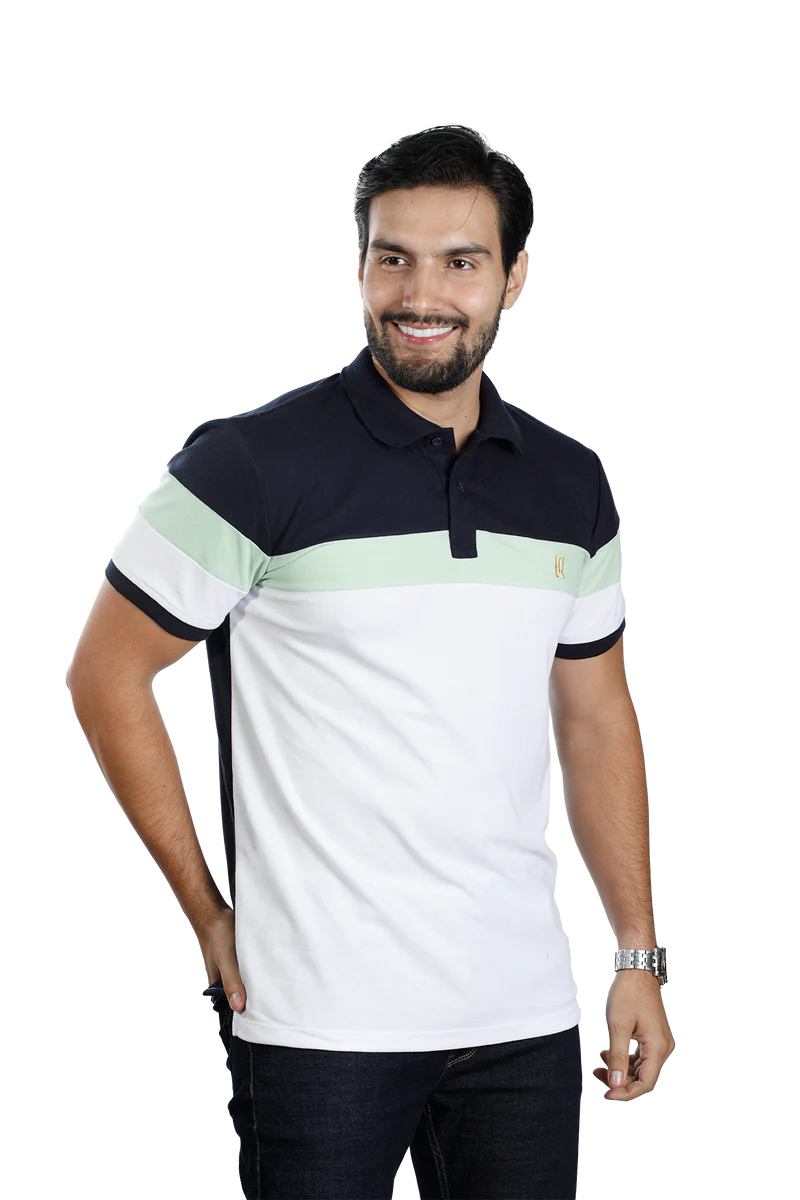 Camiseta tipo polo azul osc limon blanco 007k