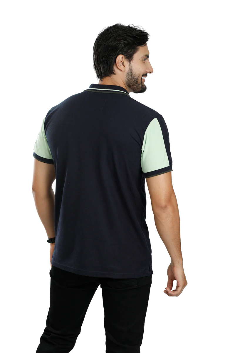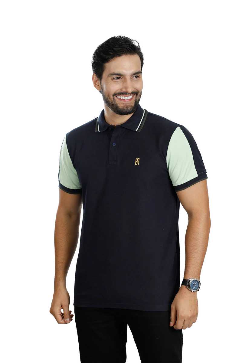 Camiseta tipo polo azul osc verde limon 089a