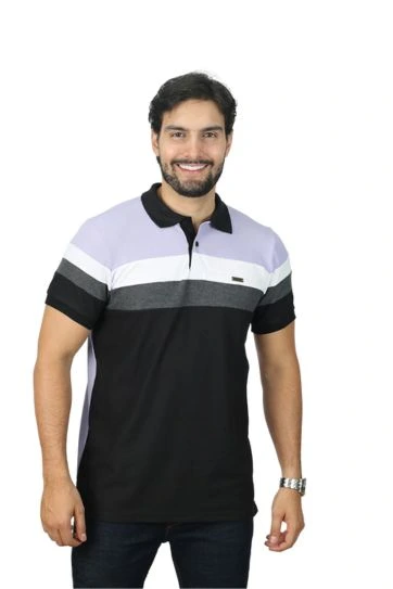 Camiseta tipo polo Lila Blanco Cross 094b